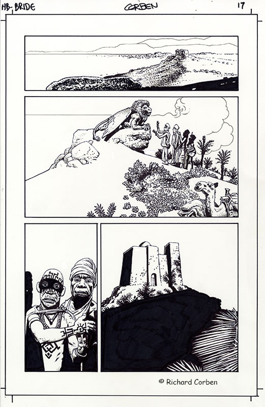 Richard Corben’s comic page drawing of Hellboy Bride page 17. Pen, ink and markers.