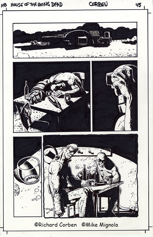 Richard Corben’s comic page drawing of Hellboy, House of the Living Dead, page 45. Pen, ink and markers.